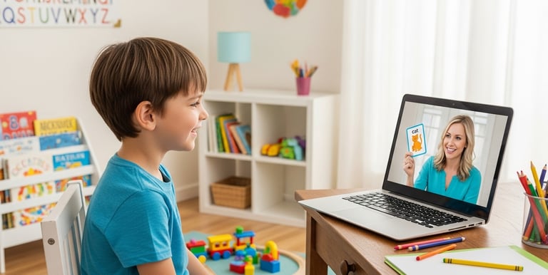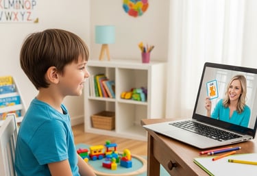 Teletherapy allows children to receive high-quality speech therapy from any location. This option offers flexibility for busy families while still supporting meaningful progress and parent participation. Our platform is HIPPA compliant and offers flexibility and convenience for families.